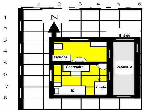 La chambre a environ 15 m². L'armoire et le secrétaire sont du bois d'épicéa. Sur le plafond il y a un tapis .