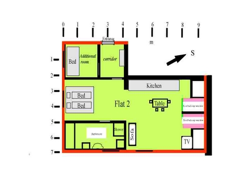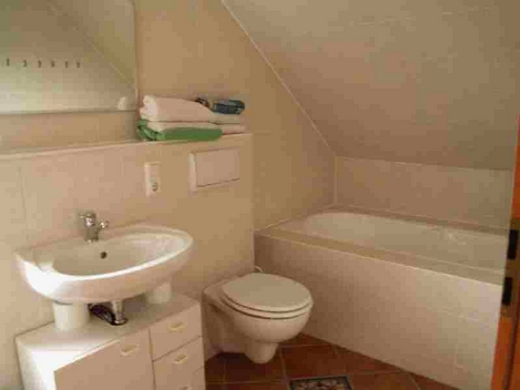 The holidayflat has about 50 m² and constists of a living/bedroom, a complete kitchen (with dishwasher, coffeemaker, stove and refrigerator) and a bathroom with a shower and a bathtub. The room also has a washing-machine. In the hallway there is a nice coat rack. Two places to sleep (double bed) are in the room itself. You can rent until three additional beds for children or accompanied persons in additional room(s).