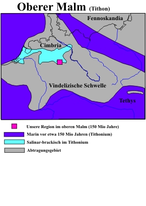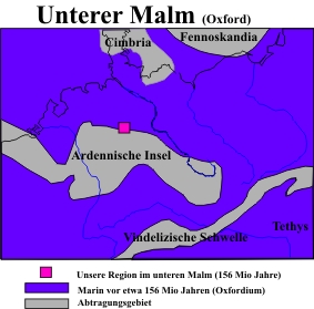 Mit dem Beginn des Malm vollzog sich ein Umschwung hin zu hellen Karbonat-Gesteinen. Korallenoolith und Gigas-Schichten bauen sich aus Oolith- und Bruchschillkalken, der Kimmeridge aus knolligen Mergelkalken auf. Vom Ausgang des Kimmeridge (152 Mio Jahre) ab engte sich der Sedimentationsbereich auf eine schmale und tiefe Senke, dem Niedersächsischen Becken ein. Es kam erneut zu einer allmählichen Eindampfung mit Salzbildungen.