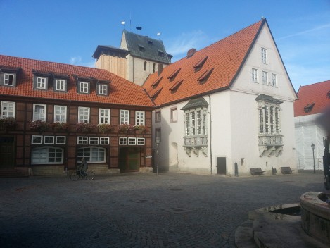 It is right in the middle of the historical city on the market place, which is surrounded by lots of restorated half-timbered houses The Town Hall shelters a museum in the attic since 1952. The so called Watch's room" - where the city guard was living - is on its highest point and often used for wine seminars. There are 140 steps to be climbed to reach this room. But then - once having arrived- you can enjoy a nice overview over the old town of Bad Gandersheim