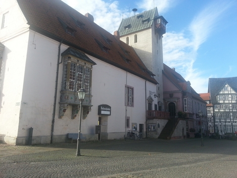 Das Rathaus von Bad Gandersheim - wie man es heute vorfindet - ist ein Weserrenaissance - Bau.