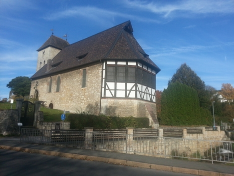 Die Kirche besteht aus dem 22 Meter langen und 11,5 Meter breiten gotischen Kirchenschiff sowie dem wohl älteren romanischen Turm.Eine Besonderheit ist die Lage der Kirche außerhalb der Stadtmauer.
